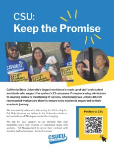 The California State University Employees Union (CSUEU) represents staff and student assistants who support the California State University’s 23 campuses.
